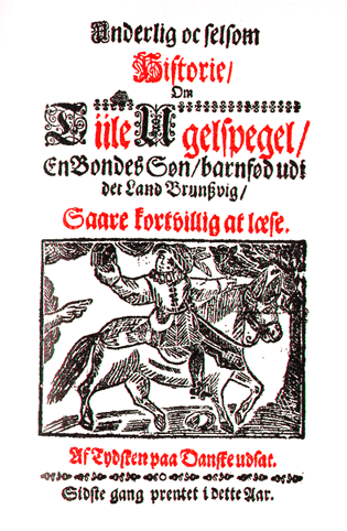Underlig oc selsom Historie / Om Tiile Ugelspegel / En Bondes Søn / barnfød udi det Land Brunszvig / Saare kortvillig at læse. Af Tydsken paa Danske udsat. Sidste gang prentet i dette Aar.
