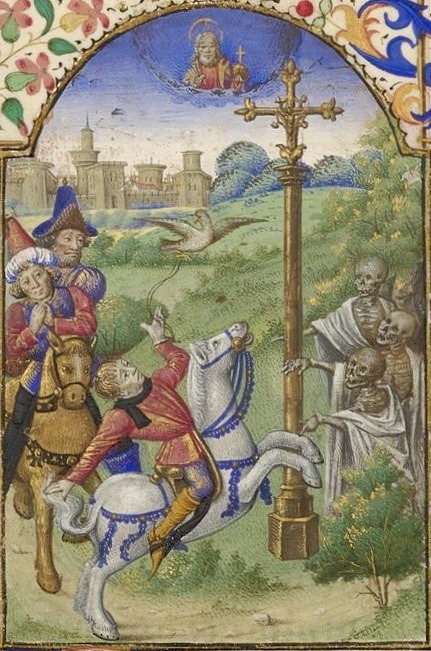 The Three Living and the Three Dead; Master of the Dresden Prayer Book or workshop